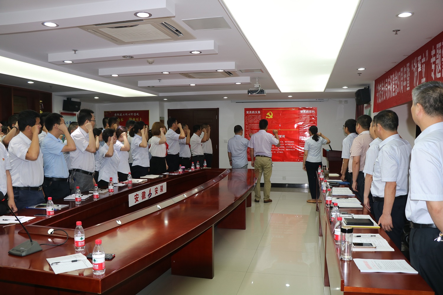 為慶祝中國共產黨建黨97周年,扎實開展好“講忠誠、嚴紀律、立政德”專題警示教育,推動全面從嚴治黨向縱深發展。7月4日下午,安徽安裝公司黨委召開慶祝建黨97周年暨“講嚴立”專題警示教育黨課報告會。公司黨委書記、副總經理胡六中作了題為《講忠誠 嚴紀律 立政德 做新時代合格共產黨員》的黨課報告。公司董事長、總經理、黨委副書記王軍邦主持會議并宣貫集團公司慶祝建黨97周年暨黨的建設工作會議精神。黨委委員、副總經理劉安俊宣讀表彰決定。公司領導班子成員、機關部門正副職、機關在崗黨員、分公司領導班子成員和受表彰的先進基層黨組織、優秀共產黨員和優秀黨務工作者共70余人參加會議。