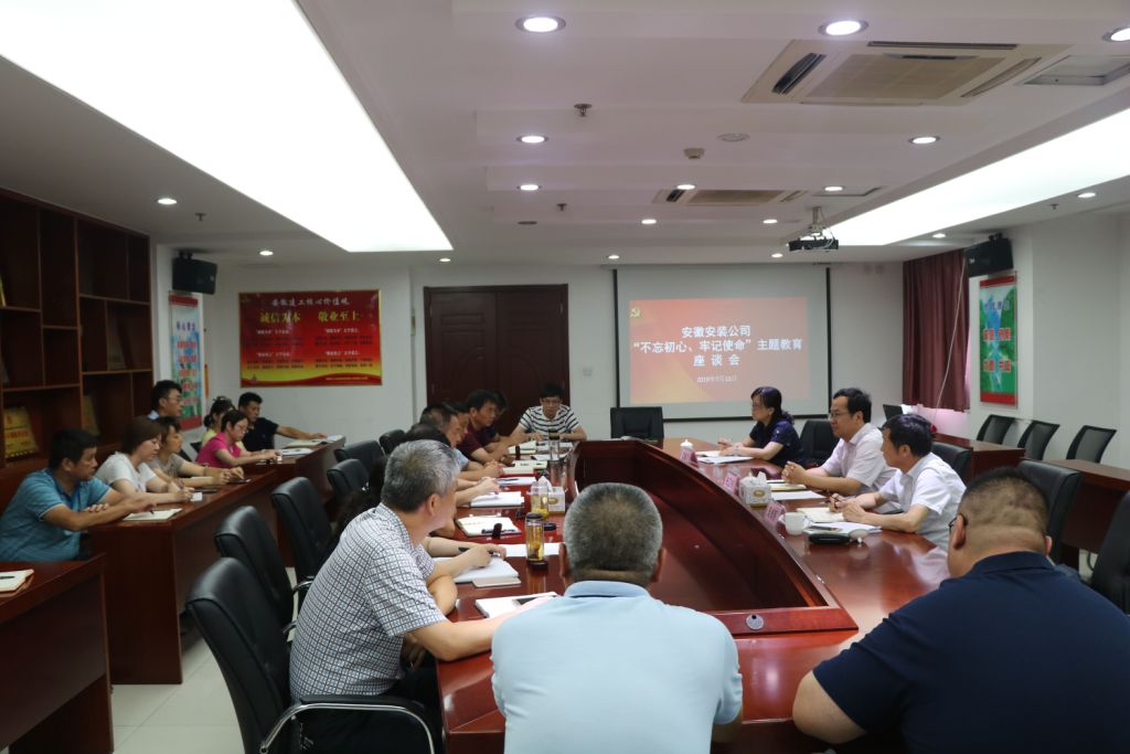 7月15日下午,安徽安裝公司召開“不忘初心、牢記使命”主題教育座談會,建工控股黨委主題教育第一指導組組長、技師學院黨委書記、院長張衛東,指導組副組長、技師學院紀委書記吳良照和技師學院黨工部副主任沈曉云出席會議。安徽安裝領導班子成員、機關各部門負責人及所屬分公司黨政負責人參會。
