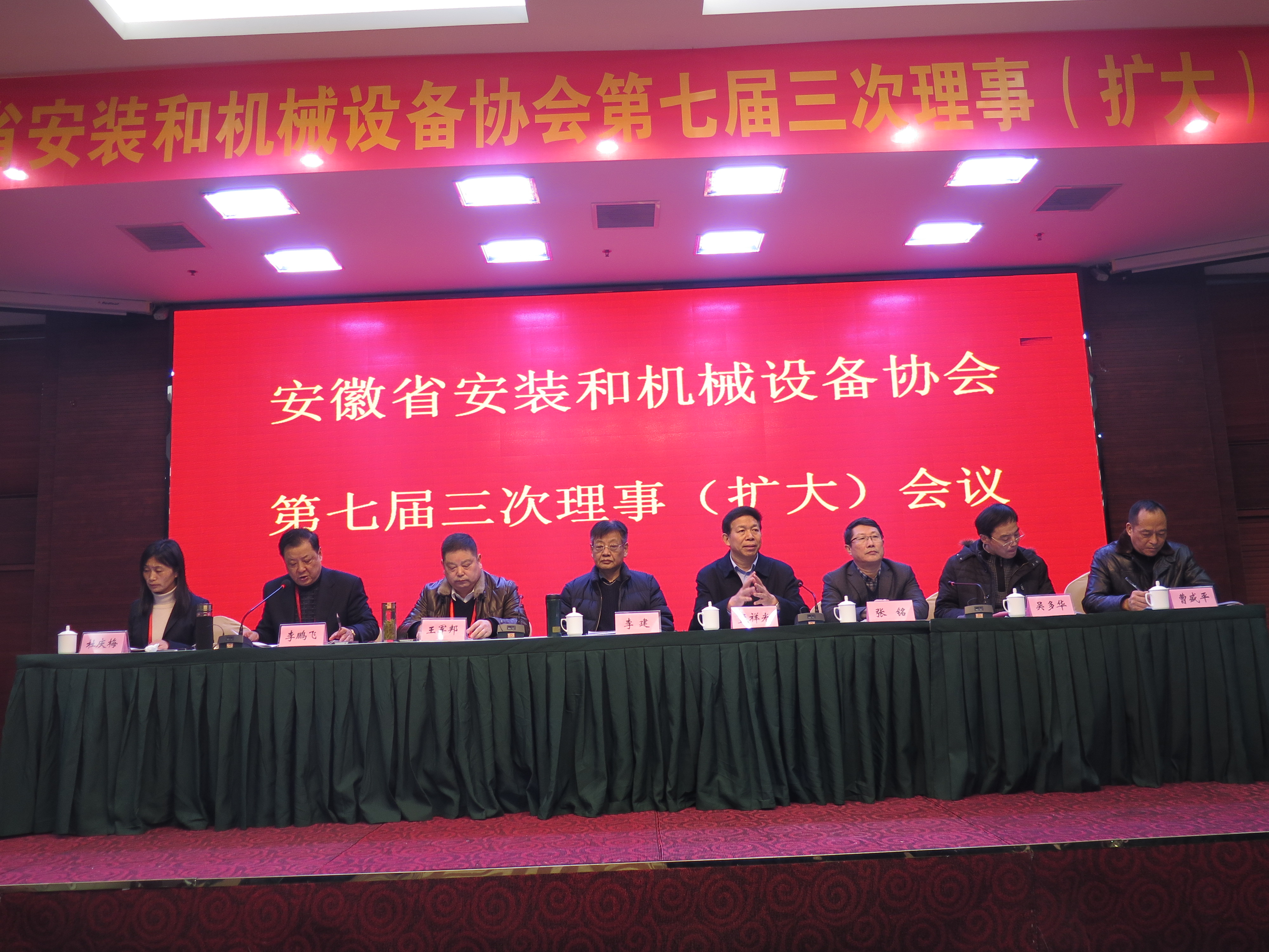 新年伊始,萬象更新,2019年1月3日-4日,安徽省安裝和機械設(shè)備協(xié)會在安徽蚌埠召開第七屆三次理事(擴大)會議。安徽建工集團有限公司總經(jīng)理助理、協(xié)會會長、法定代表人王軍邦,駐會副會長李鵬飛,秘書長杜慶梅,蚌埠市政協(xié)副主席、秘書長孟祥光,蚌埠市住建委黨委書記、主任張銘,安慶市建筑管理處副主任吳多華,六安市建筑工程質(zhì)量安全監(jiān)督站副站長曹盛平等領(lǐng)導(dǎo)出席會議。會議特邀安徽省政協(xié)常委、原安徽省住房和城鄉(xiāng)建設(shè)廳巡視員李建作建筑行業(yè)轉(zhuǎn)型升級發(fā)展的專題報告。各市縣行業(yè)主管部門負(fù)責(zé)人,副會長、理事和會員單位負(fù)責(zé)人、專家、聯(lián)絡(luò)員及受表彰的企業(yè)代表,受表彰的 2017-2018年度“協(xié)會之友”、領(lǐng)取職稱證書的企業(yè)代表等近300人參會。會議由副會長李鵬飛主持。