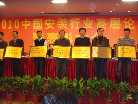 楊存成秘書長宣讀了2010年各項表彰決定,表彰了2010年度全國安裝行業先進企業58家、優秀企業家48位和優秀項目經理214名,向獲獎企業和人員頒發獎牌獎杯和榮譽證書。陜西建工集團設備安裝工程有限公司總經理孟堅代表全國安裝行業先進企業,中國電子系統工程第二建設有限公司總經理侯憶代表全國安裝行業優秀企業家,五洋建設集團股份有限公司項目經理徐建豐代表全國安裝行業優秀項目經理進行獲獎感言。受表彰的企業和個人表示進一步認真貫徹落實科學發展觀,戒驕戒躁,再接再厲,開拓進取,進一步發揮先進模范作用,不斷創造新業績,為促進安裝行業持續健康發展做出新貢獻。