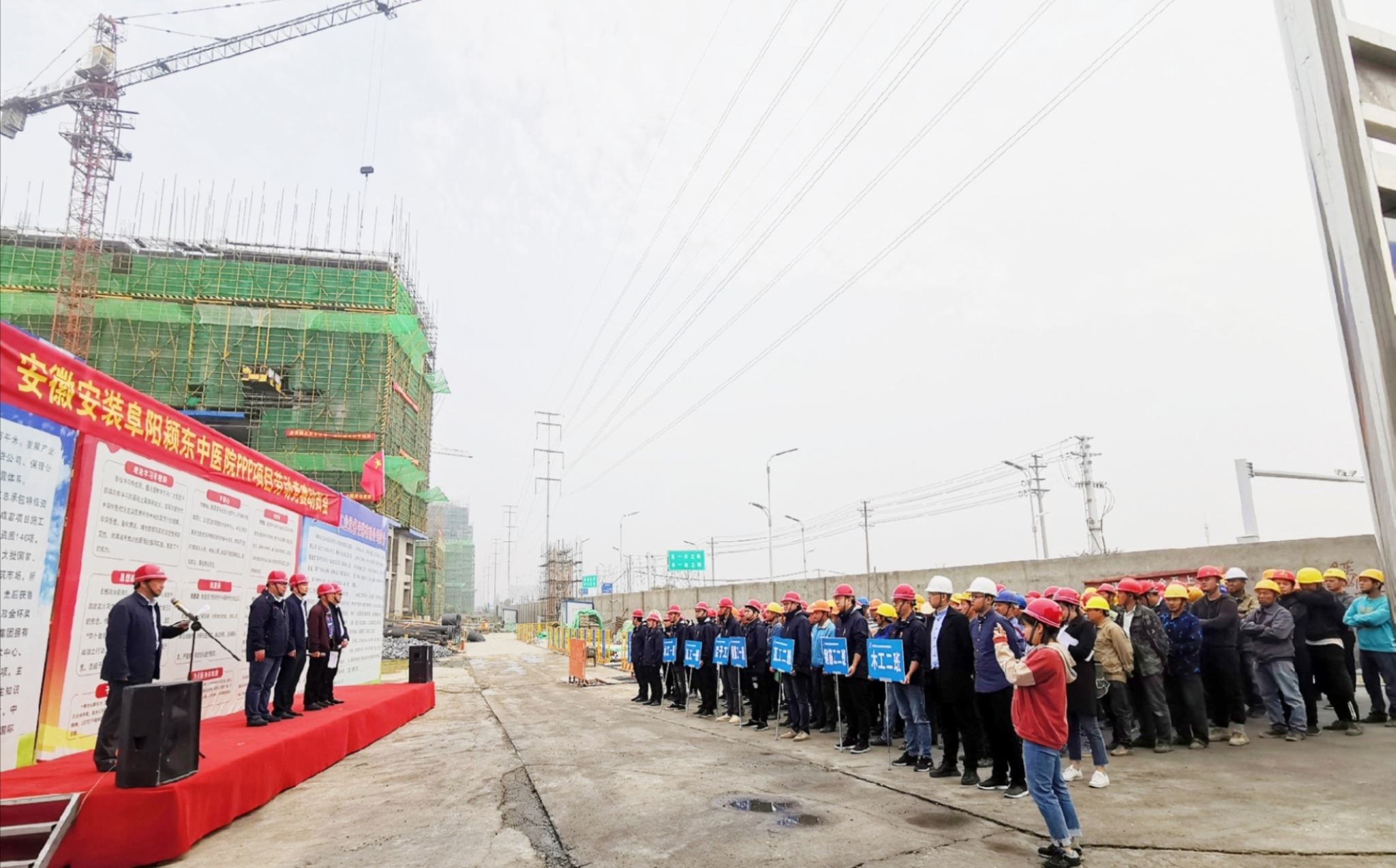 為確保年度各項目目標任務順利完成,貫徹落實集團公司開展“搶進度、保工期、穩預期、促提升”為主題勞動競賽活動精神,2019年10月11日上午,安徽安裝召開阜陽潁東區中醫院PPP項目“大干四季度”勞動競賽動員大會。公司副總經理高飛,紀委書記、工會主席李寬旭,總工程師吳繼成,公司相關部門負責人、項目管理人員和施工班組共120多人參加了競賽動員會。