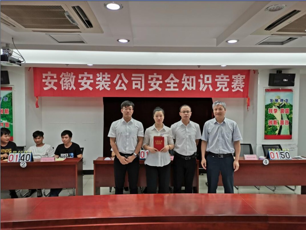 本次競賽由公司安全管理部、工會主辦,機關和所屬分公司公司共9支代表隊參加。經過個人必答題、小組必答題、搶答題及風險題等四種題型的激烈爭奪,最終由安慶分公司代表隊榮獲冠軍,西北分公司代表隊榮獲二等獎,房建(裝飾)分公司和合肥分公司第二代表隊榮獲三等獎。