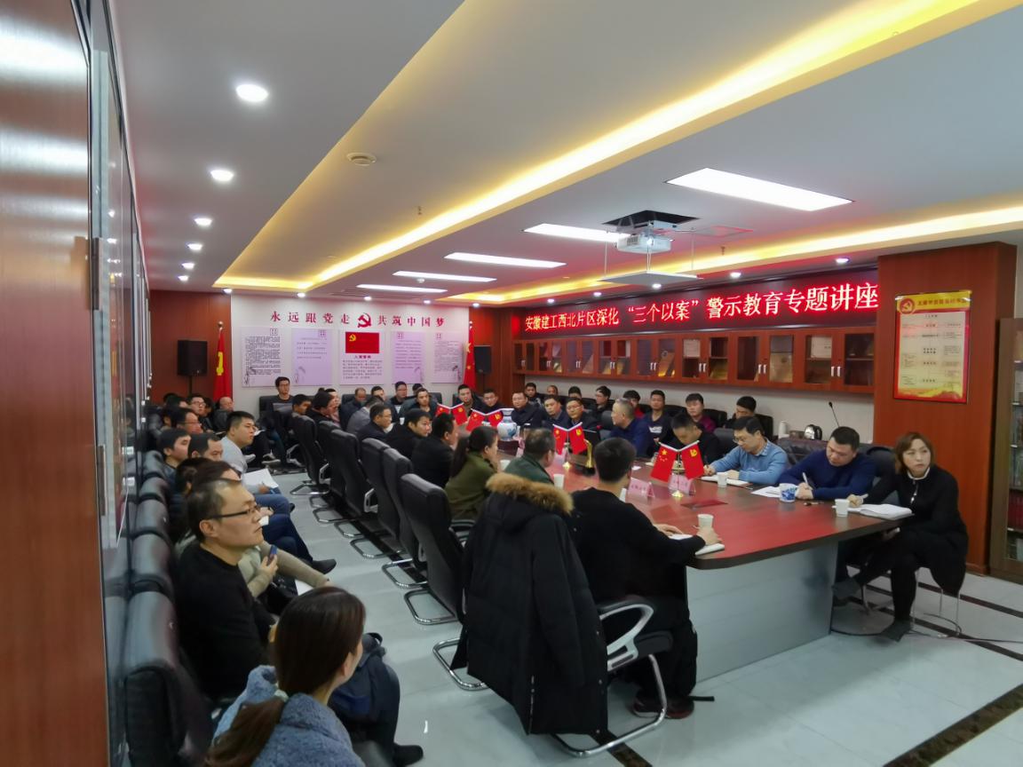 1228日下午2點,西北分公司全體員工赴安徽三建西北分公司,參加安徽建工集團控股有限公司西北片區深化“三個以案”警示教育專題講座,此次講座由安徽建工集團控股有限公司紀委副書記、紀檢監察室主任龔志酬授課,參會人員由安徽三建、安徽水利、安徽路橋、安徽建材、安徽安裝等西北片區基層代表組成。