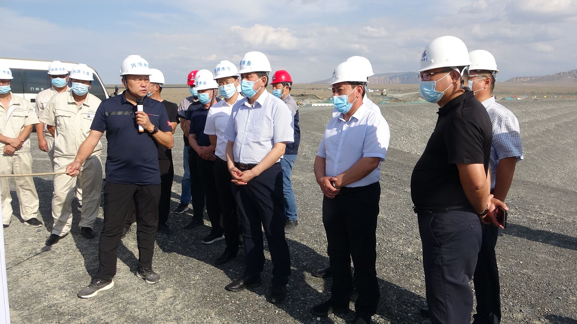 新疆烏蘇分公司從項目疫情防控、工程進度、重難點施工、安全文明生產等方面作了詳細的匯報。當得知項目部在疫情影響開工推遲近兩個月的情況下,采取勞動競賽等舉措,搶抓疫情造成的工期損失,確保工程優質、高效、如期完成時,木合亞提·加爾木哈買提對項目復工以來攻堅克難取得的成效給予了充分肯定。