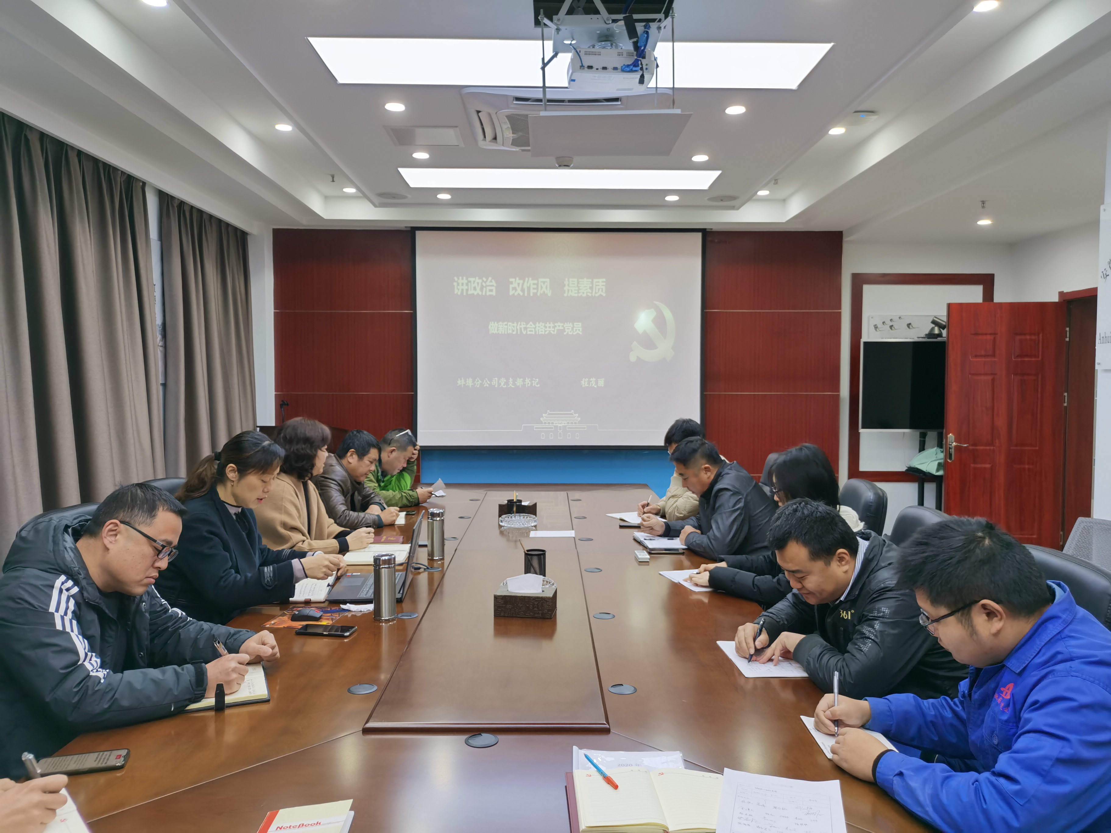 11月27日,蚌埠分公司黨支部書記程茂麗赴安慶分公司以《講政治 改作風 提素質——做新時代合格共產黨員》為題,給大家講了一堂生動的專題黨課。分公司領導班子成員、全體黨員、青年團員、各科室負責人及機關辦公室人員參加本次黨課學習。