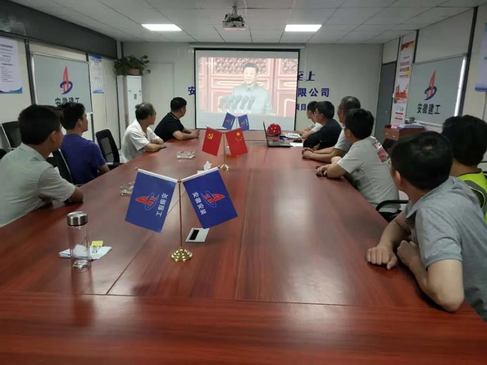 上午8點整,慶祝中國共產黨成立100周年大會在北京天安門廣場隆重舉行,中共中央總書記、國家主席、中央軍委主席習近平發表重要講話。與此同時,安徽安裝所屬各單位、各基層黨組織、各項目一線紛紛第一時間組織職工群眾收聽收看大會直播。