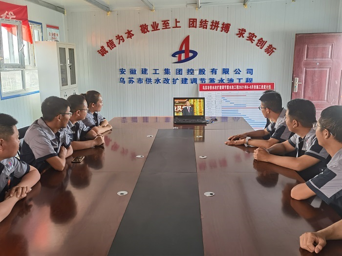 新疆烏蘇市供水改擴建調節(jié)蓄水池項目部集中觀看節(jié)目