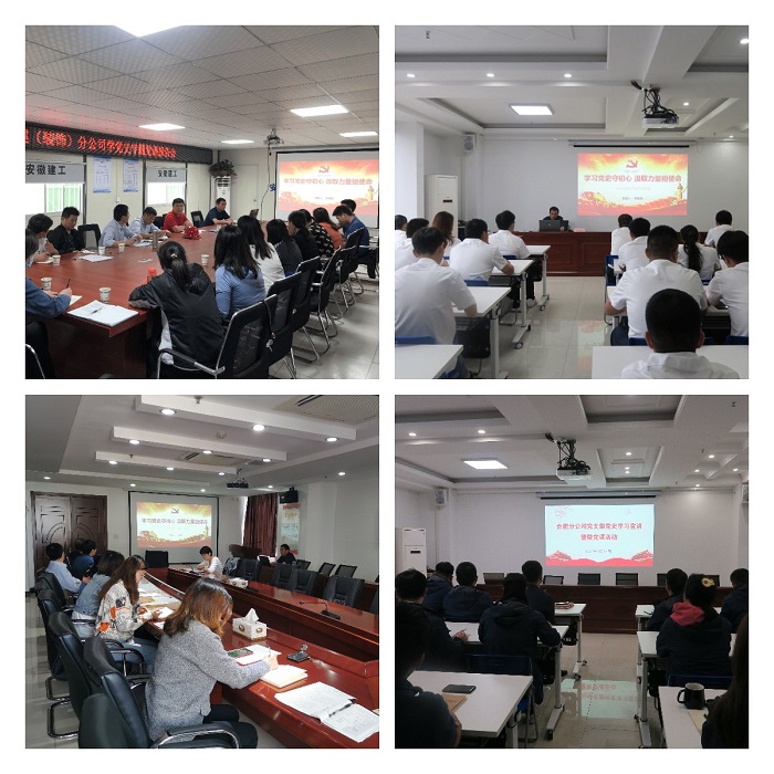 做好動員宣傳,切實營造良好氛圍。3月25日下午,公司黨委召開黨史學習教育動員大會,及時制定并下發(fā)《安徽安裝公司黨委關于開展黨史學習教育的工作方案》,成立安徽安裝公司黨委黨史學習教育領導小組,黨委主要負責同志任組長,黨委領導班子成員任組員,所屬各黨支部切實扛起主體責任,黨支部書記落實第一責任,確保強化組織領導,明確責任分工;5月13日上午,召開黨史學習教育推進部署會;5月18日下午,召開學黨史、抓整改、正作風暨“違規(guī)決策、違規(guī)投資、違規(guī)擔保、違規(guī)招投標”專項整治動員部署會議,確保公司學黨史、抓整改、正作風取得實效。