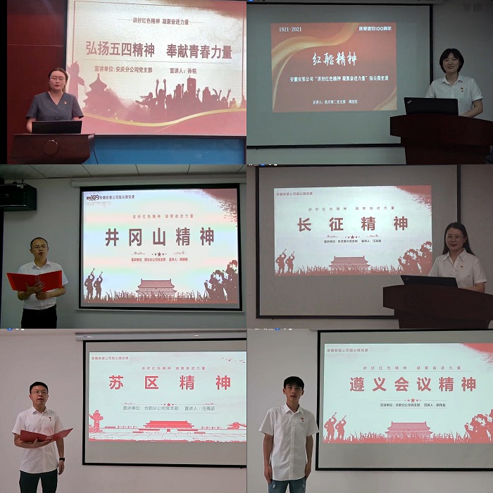 指尖微黨課課堂。為慶祝建黨100周年,促進黨史學習教育方式多樣化,讓廣大基層一線黨員尤其是青年黨員同志廣泛參與到黨史宣講中來,公司黨委依托公司官方微信公眾號重新打造安徽安裝的黨課品牌——“指尖微黨課”課堂,組織開展了“講好紅色精神 凝聚奮進力量”指尖微黨課活動。所屬各黨支部積極推薦黨員同志,尤其是基層一線的黨員同志參與到公司黨委“指尖微黨課宣講員”隊伍中來,此次指尖微黨課課堂每集時長5-8分鐘,短小簡潔且內涵豐富,以五四精神、紅船精神、井岡山精神、延安精神、航天精神、偉大抗疫精神等人民熔鑄鍛造的偉大紅色精神為主題,講述這些紅色精神背后的感人故事,圍繞每一期紅色精神主題,主講人結合自身工作實際,談感想談體會。指尖微黨課旨在變“被動學”為“主動講”,變“集中念開會讀”為“隨時看隨地學”,解決了公司項目點多面廣,黨員分散不易集中系統(tǒng)學習的問題,現(xiàn)在只要打開手機,利用零碎時間就可以通過身邊人的宣講更直觀更生動地領略黨史中的奮進力量,切實做到“人人都是宣講員、黨課揣進口袋中”。