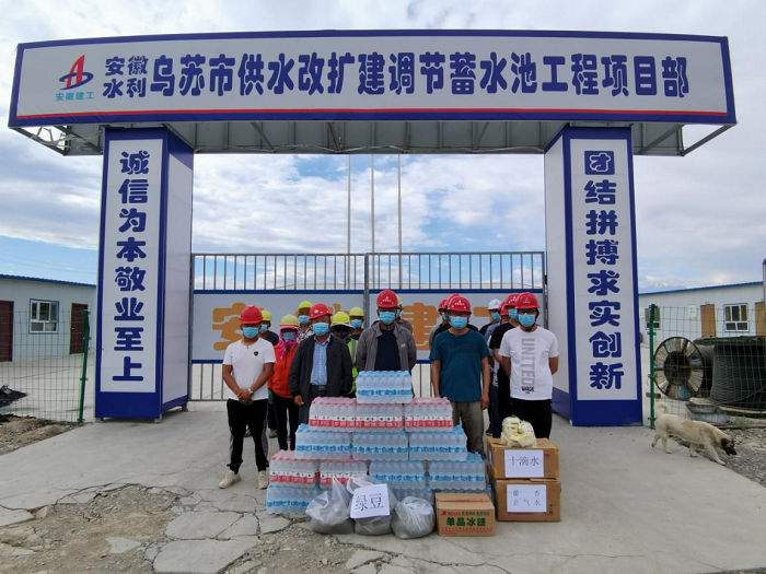 截至目前,烏蘇市供水改擴建調節蓄水池工程蓄水池混凝土面板完成4873塊,占總面板數的77.87%,放空管線安裝回填3.45km,占管道總工程量的75%,完成產值總計約1.23億元,占合同額86.62%。奮戰在施工一線的職工收到分公司送來的慰問品后紛紛表示,一定會克服酷暑高溫,堅守崗位,恪盡職守,確保安全,積極投身于工程建設中,持續發揚安徽建工人“特別能吃苦  特別能戰斗”的企業作風,為早日完成烏蘇市供水改擴建調節蓄水池工程而努力拼搏奮斗。