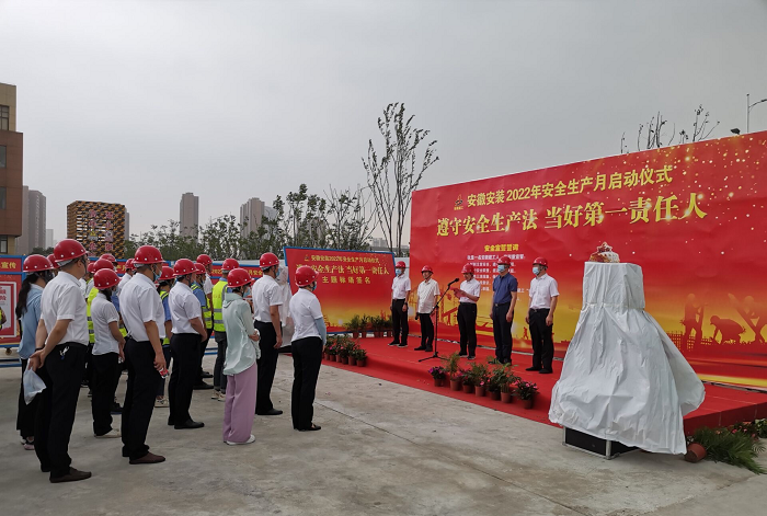 在全國(guó)第21個(gè)“安全生產(chǎn)月”活動(dòng)到來(lái)之際,5月30日上午,安徽安裝公司2022年“安全生產(chǎn)月”啟動(dòng)儀式在年配套1000萬(wàn)臺(tái)新能源汽車及年產(chǎn)2億臺(tái)制冷空調(diào)壓縮機(jī)關(guān)鍵性能件制造基地項(xiàng)目舉行。公司黨委書記、董事長(zhǎng)胡六中,紀(jì)委書記、工會(huì)主席李楊,副總經(jīng)理趙伯平,總工程師吳繼成及機(jī)關(guān)各部門、各分公司代表參加了本次活動(dòng)。