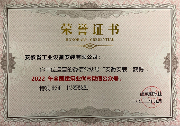 此次榮獲“全國(guó)建筑業(yè)優(yōu)秀微信公眾號(hào)”榮譽(yù)稱號(hào)是對(duì)安徽安裝企業(yè)微信公眾號(hào)運(yùn)營(yíng)以來(lái)取得成績(jī)的一次肯定,更是對(duì)接下來(lái)做好企業(yè)宣傳工作的極大鞭策。在接下來(lái)的工作中,安徽安裝黨委將以喜迎黨的“二十大”勝利召開(kāi)和宣傳貫徹好黨的“二十大”精神為宣傳主線,以微信公眾號(hào)為平臺(tái),結(jié)合公司實(shí)際,講好安徽安裝故事,傳播安徽安裝在踐行黨的“二十大”精神,開(kāi)啟高質(zhì)量發(fā)展新征程上的正能量事跡,凝聚最廣大干部職工團(tuán)結(jié)奮進(jìn)的力量,為加快建設(shè)“四個(gè)安徽建工”貢獻(xiàn)安徽安裝力量,以優(yōu)異成績(jī)向黨的“二十大”獻(xiàn)禮!