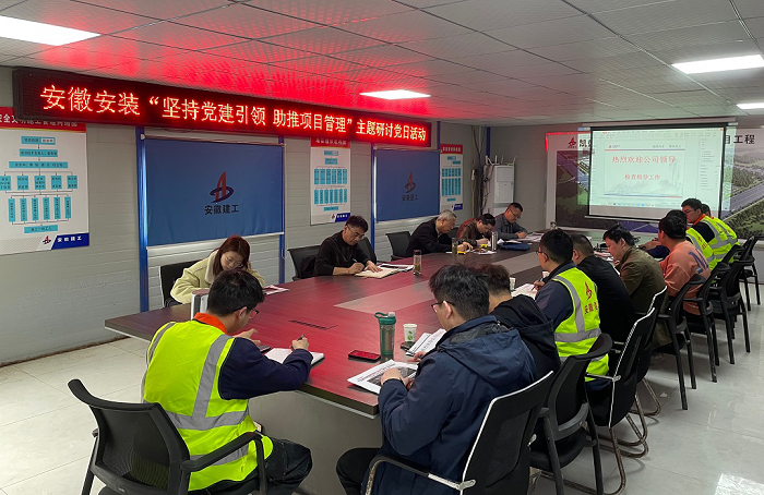 近日,安徽安裝公司黨委結合2023年一季度工程項目管理綜合檢查,到房建(裝飾)分公司阜南污水處理廠項目部和蚌埠分公司凱盛項目部組織開展了“堅持黨建引領 助推項目管理”主題研討黨日活動。公司黨委辦公室、工程管理部(安全管理部)、物資管理部、招標辦公室、所屬分公司及項目部班子成員參加了此次活動。