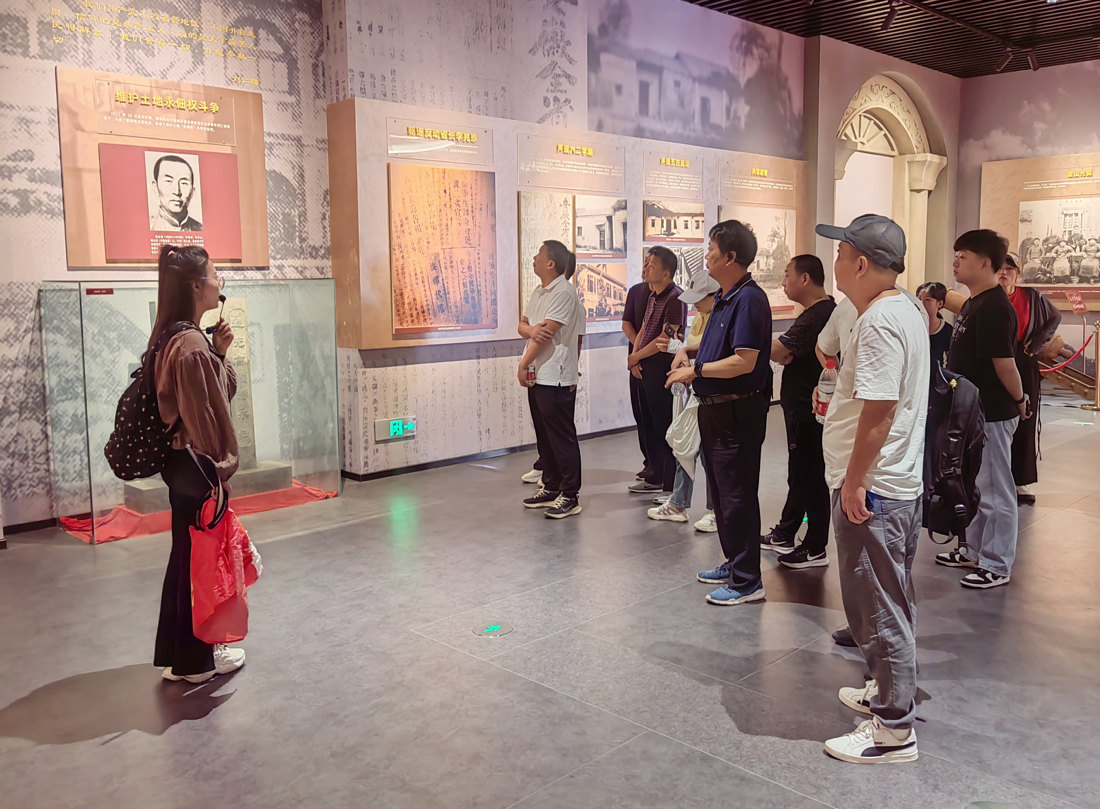 大家首先參觀了安徽紅色區域中心紀念館,在解說的帶領下,通過繪畫、雕塑、文獻資料、兵器、烈士遺物等實物詳細了解霍山革命歷史和英雄事跡。隨后又來到了紅源廣場,先后參觀了革命烈士群雕、革命先輩紀念墻、四個第一歷史豐碑柱,緬懷先輩們的卓越功勛,深切感受到共產黨人追求真理的堅定信念和浴血奮戰的革命精神。