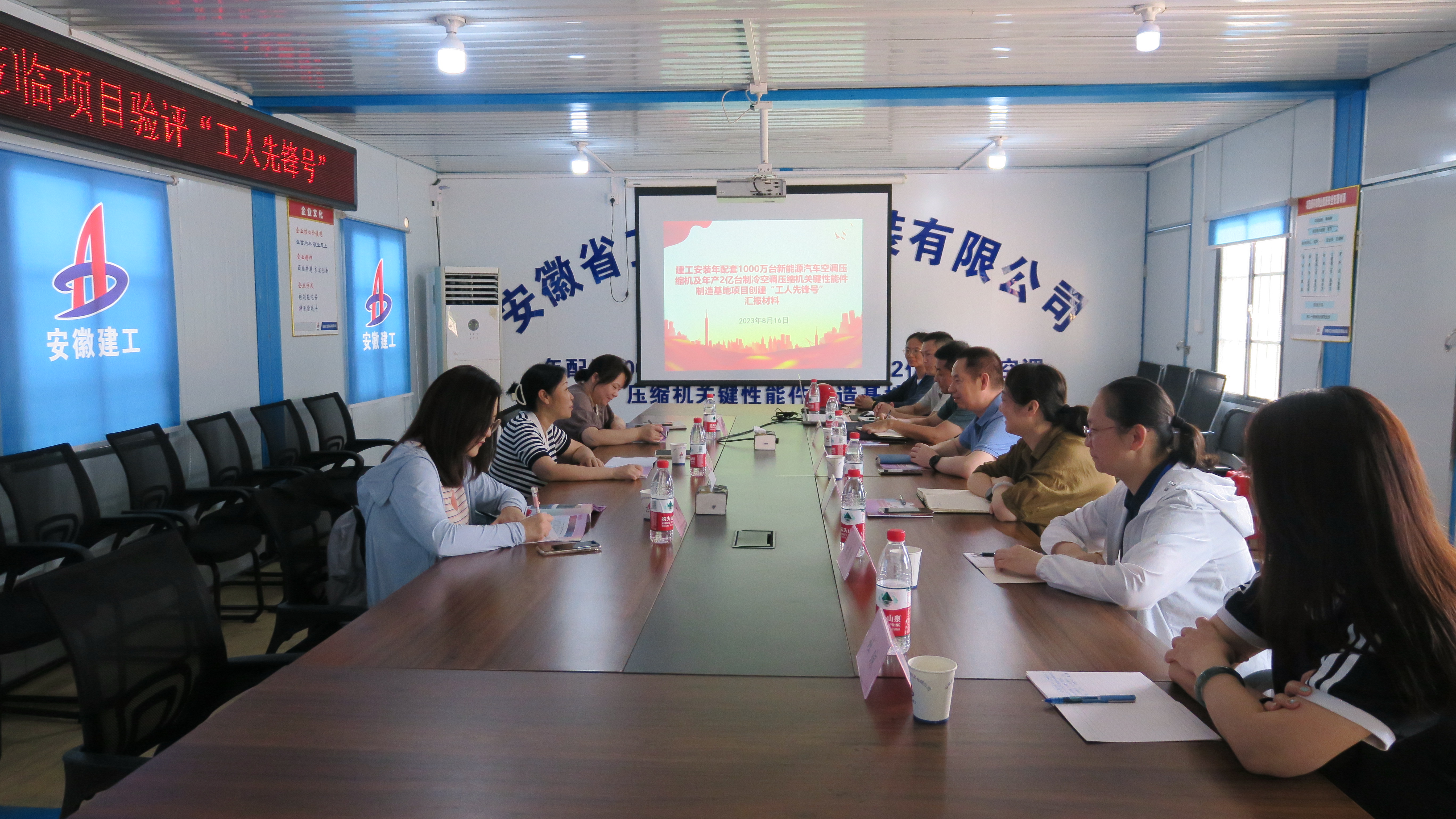 8月16日上午,集團工會副主席、股份公司副總經理邢應梅帶隊赴建工安裝年配套1000萬臺新能源汽車及年產2億臺制冷空調壓縮機關鍵性能件制造基地項目部開展集團“工人先鋒號”創建工作考評驗收。建工安裝黨委書記、董事長胡六中參加。