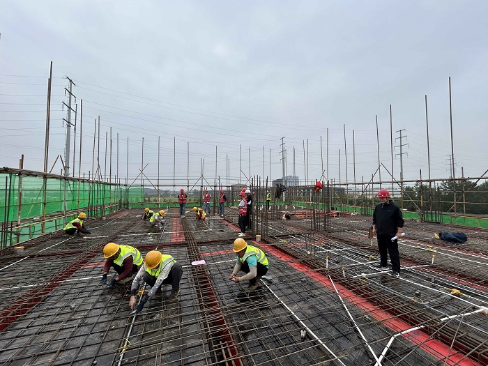 本次鋼筋綁扎比賽共有8名參賽選手,組成四支比賽隊伍,以綜合樓三層的梁板鋼筋綁扎為操作面進行比武,對選手的速度、鋼筋綁扎的牢固性、鋼筋間距、鋼筋位置、觀感及是否按圖施工等方面進行綜合打分。比賽期間,參賽人員根據圖紙要求,熟練地在鋼筋上穿插、捆扎、固定,分工有序、配合緊密。經過1個小時的激烈角逐,四支隊伍的鋼筋綁扎均在規定時間內完成,評審組依據詳細的評分標準,進行實測質量和現場考評,評出一、二、三等獎等。