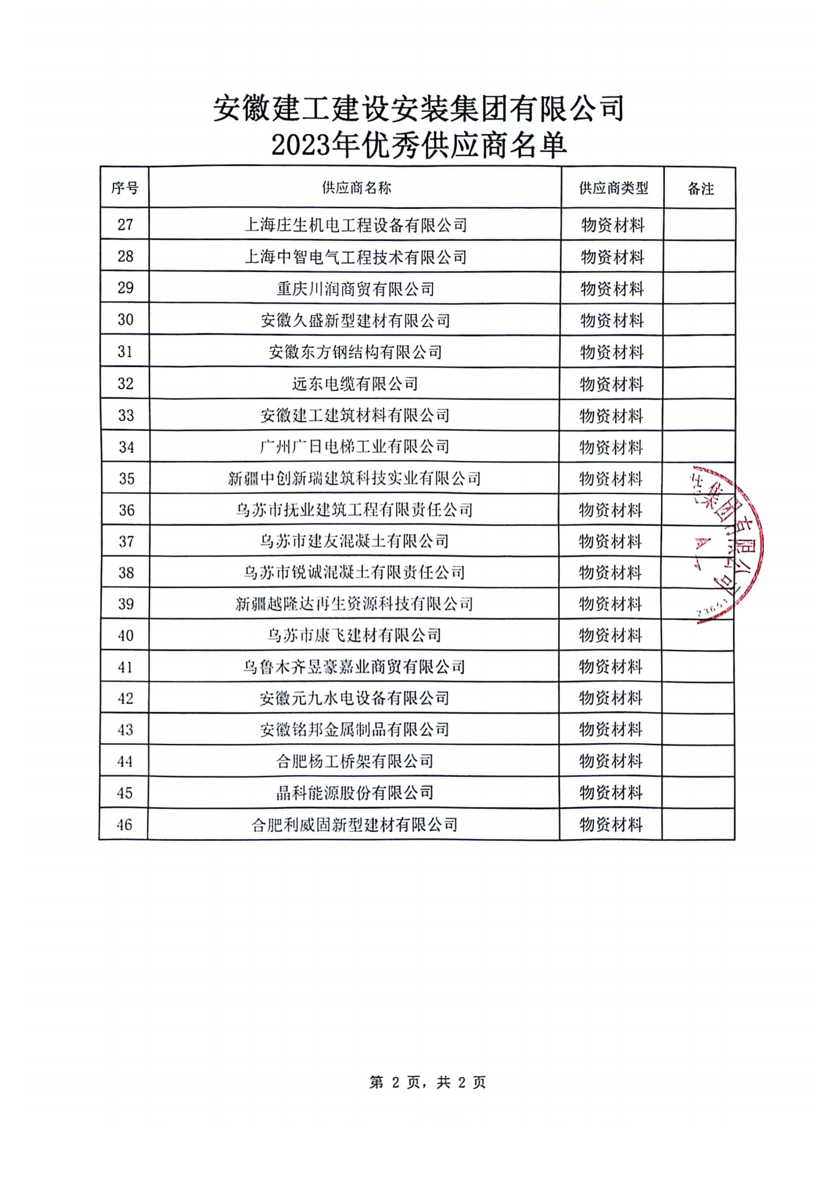 關于公布2023年度公司優秀供應商的通知