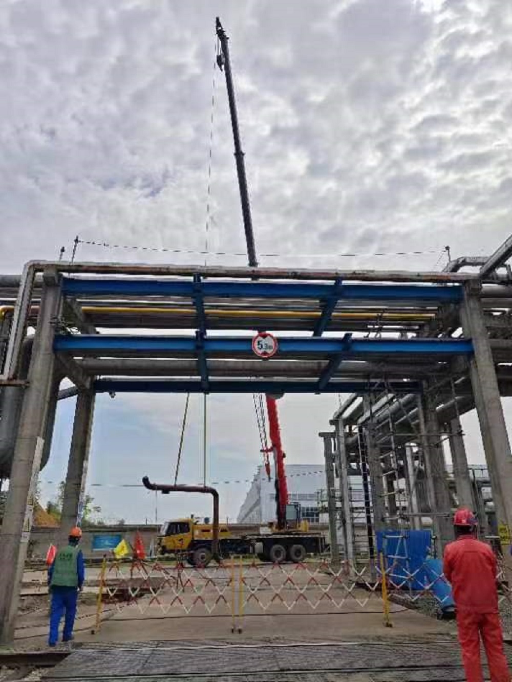 目前該項目已完成支架制作安裝10噸、控制室和緩沖罐及地下罐池建造、站內管道焊口共計約9618吋、外管廊管道焊口共計約3845吋。項目實施過程中,項目部同甲方通力協作、合力攻堅,在保安全的前提下優化施工計劃,完善施工組織,在高溫雨季全力以赴三班倒、搶工期、趕進度,保障項目建設高質量穩步推進,目前項目整體進度已完成55%。