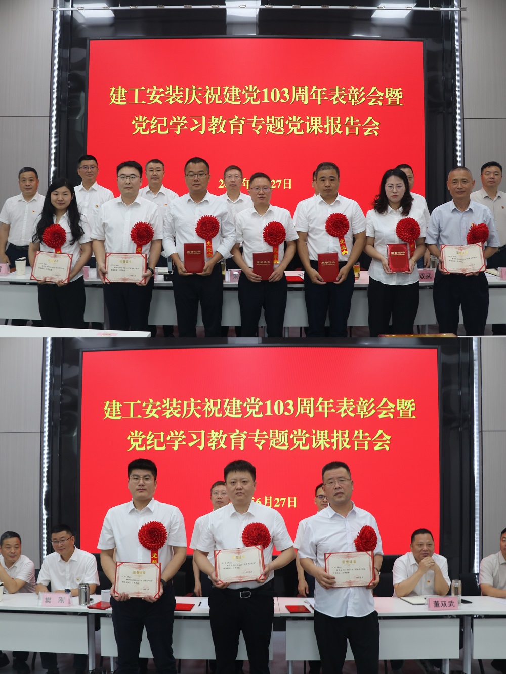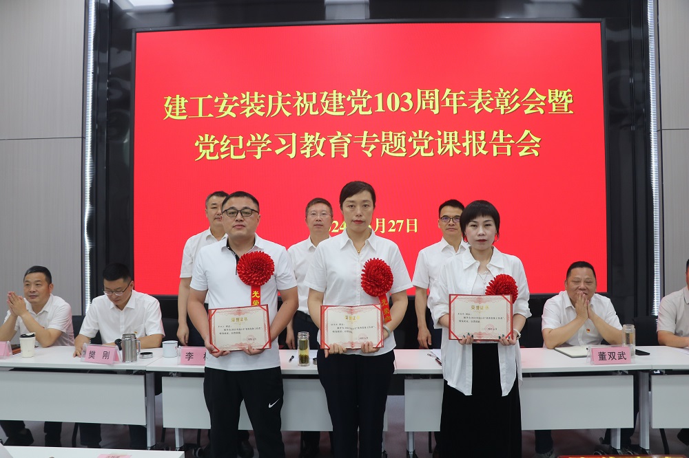 為慶祝中國共產(chǎn)黨成立103周年,扎實推進黨紀學習教育走深走實。6月27日上午,建工安裝黨委召開慶祝建黨103周年表彰會暨黨紀學習教育專題黨課報告會。公司領(lǐng)導班子成員出席會議,會議由公司黨委副書記、副總經(jīng)理周正平主持。