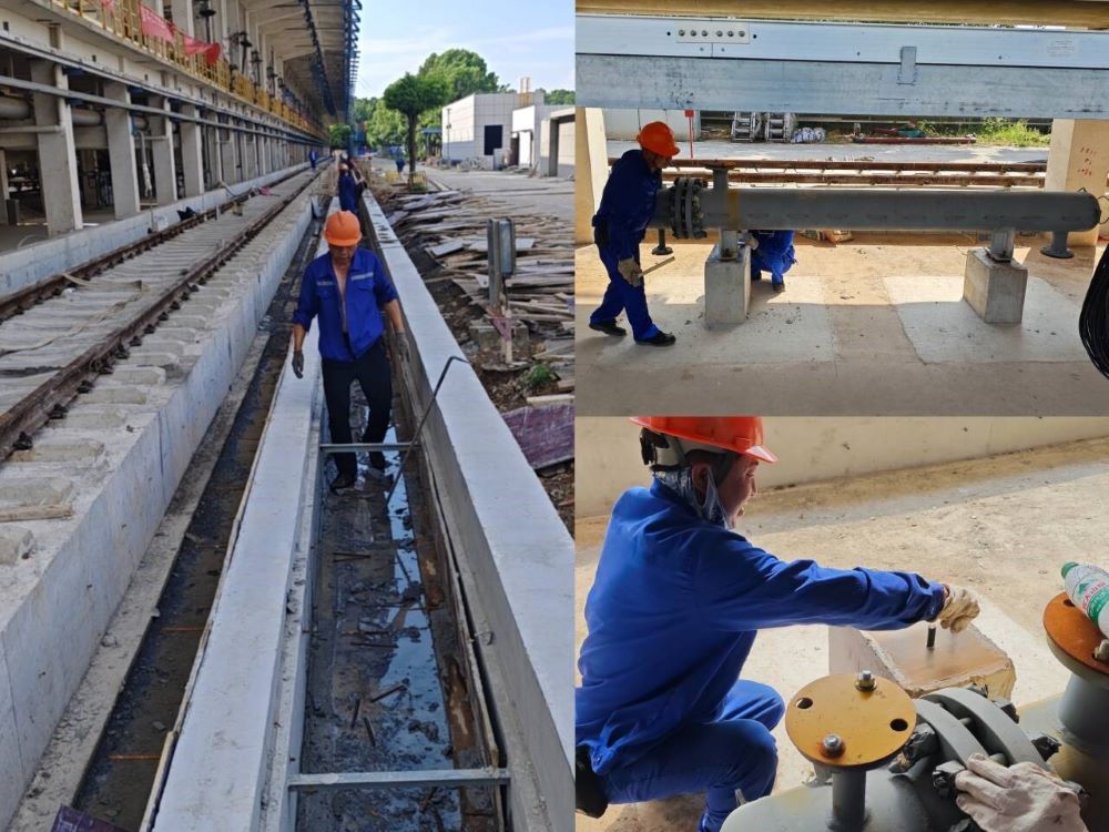 安慶石化新增鐵路接卸純苯設(shè)施項(xiàng)目,土建項(xiàng)目已基本完工,現(xiàn)剩余整體道床排水溝和兩側(cè)回填混凝體澆筑、控制室內(nèi)裝飾裝修等工作;設(shè)備安裝部分完成安裝六臺(tái)換熱器、六臺(tái)鶴管,預(yù)計(jì)九月底完工。圖為道床混凝土澆筑和換熱器安裝。
