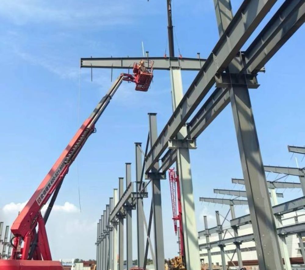 目前1-18軸鋼柱已全部安裝完成,1-6軸柱撐、鋼梁、屋面檁條已安裝結(jié)束。同時(shí)應(yīng)對(duì)持續(xù)高溫天氣,項(xiàng)目部合理安排作業(yè)時(shí)間,施工人員分工協(xié)作,錨定節(jié)點(diǎn)目標(biāo),全力以赴趕工期、搶進(jìn)度。預(yù)計(jì)9月底完成建工鋼構(gòu)智能制造基地4#廠房項(xiàng)目全部工程量。