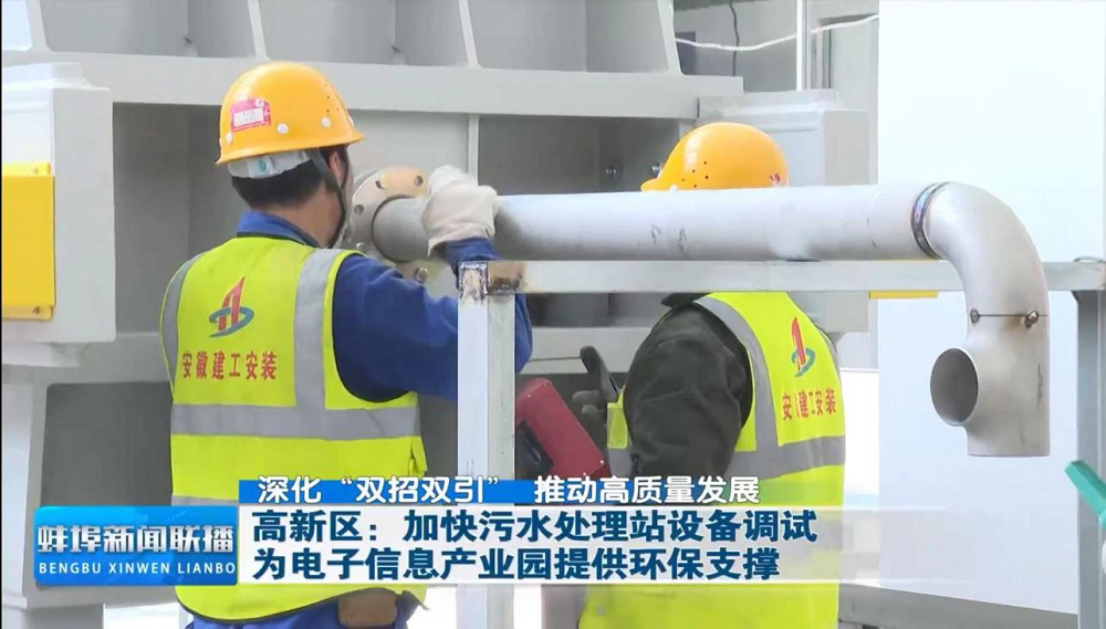 8月30日,蚌埠廣播電視臺深入蚌埠高新區電子信息產業園項目進行探訪。在電子信息產業園已經建成的污水處理站內,工作人員正在緊張進行設備調試。
