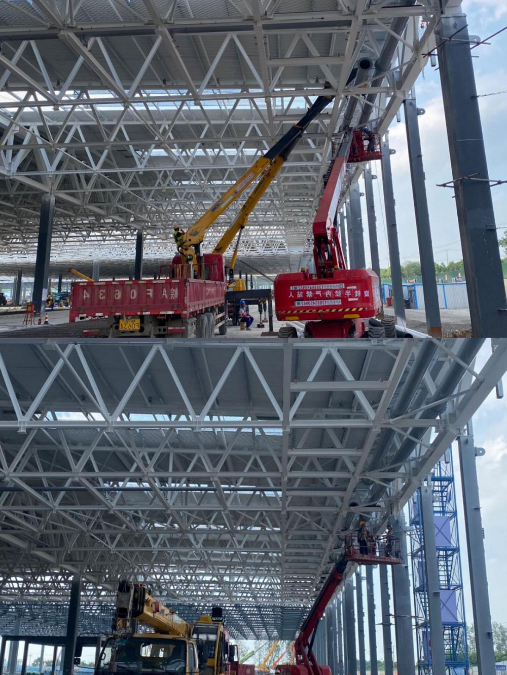 該項目工期緊、任務重,項目部開足馬力搶抓節點,充分合理調配人、材、機及資金等資源。為搶抓晴好天氣,錯峰高溫時段,管理人員靠前指揮,作業人員并聯推進、多點開花,加班加點、挑燈夜戰。在確保安全質量的前提下,優化施工方案,緊跟鋼結構及土建單位的施工進度“見縫插針”,全力推進本項目的建設進度。
