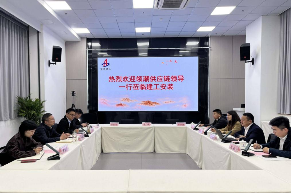 建工安裝集團(tuán)黨委書記、董事長(zhǎng)朱珍宏與深圳領(lǐng)潮供應(yīng)鏈管理有限公司總經(jīng)理端木穎新共同見證簽約儀式,并就深化合作進(jìn)行座談交流。