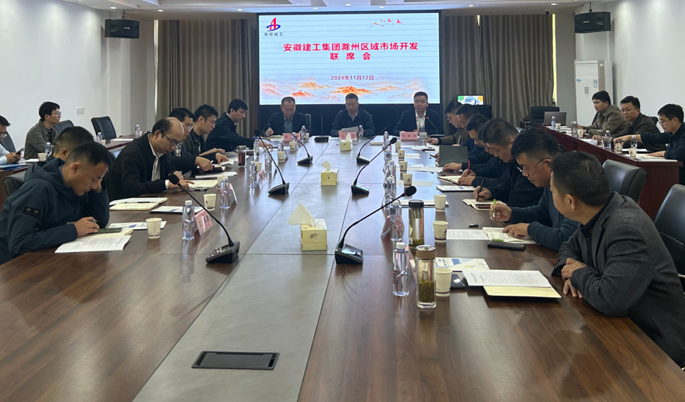 11月12日下午,安徽建工集團滁州區(qū)域市場開發(fā)第三次聯(lián)席會在建工交航全椒建投大會議室召開。建工安裝黨委書記、董事長朱珍宏,建工交航黨委委員、副總經理邢磊,集團在滁各單位主要負責人參加會議。會議由建工安裝黨委委員、副總經理劉曉剛主持。