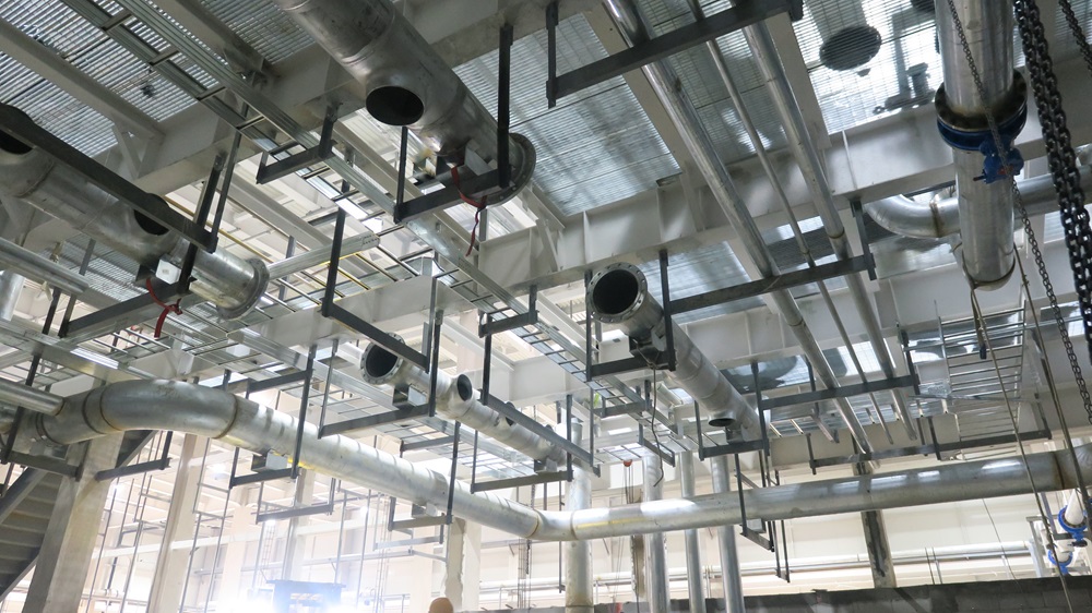 截至目前,焊裝車間空調水系統、給水系統、消防水系統已全部完成系統試壓工作。焊裝車間屋頂風機、風機控制電纜、動力電纜也已全部安裝完成。與此同時本項目的能源中心正在有條不紊的推進,冷水機組、冷卻塔、水泵等大型設備陸續到場。