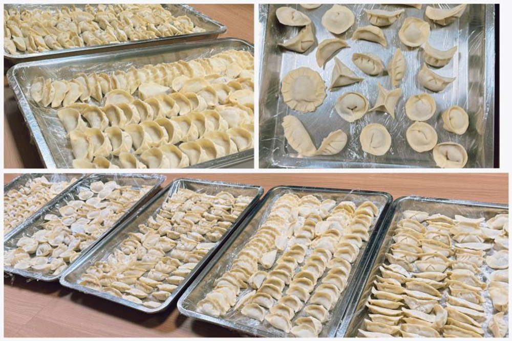 在分公司機關,會議室的長桌上擺滿了各種食材和工具,有新鮮的餃子皮、美味的餡料、筷子、勺等。大家配合默契,歡聲笑語不斷,新手們在有經驗的同事指導下,逐漸掌握了包餃子的技巧,雖然動作還有些生疏,但熱情絲毫不減。不一會兒,一個個形態飽滿的餃子就擺滿了托盤,有傳統的月牙形餃子,也有創意十足的花朵形、元寶形餃子。