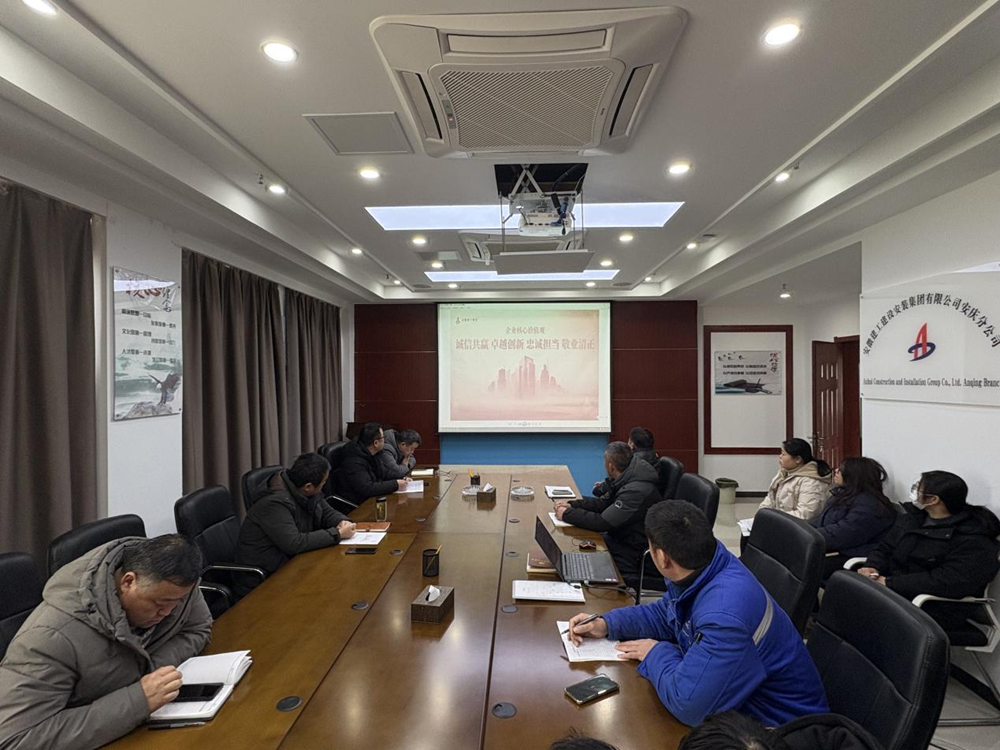 2月13日下午,建工安裝安慶分公司召開安徽建工集團核心價值宣貫會議,會上傳達學習了集團《關于開展安徽建工集團核心價值觀學習宣貫的通知》文件,并對集團核心價值觀“誠信共贏、卓越創新、忠誠擔當、敬業清正”進行闡釋講解。