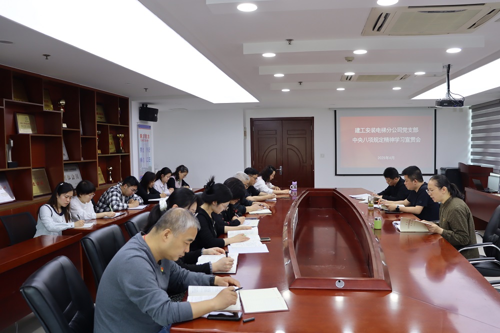 為深入貫徹落實中央八項規定精神,進一步增強廉潔自律意識,加強作風建設,近日,建工安裝電梯分公司黨支部組織集中學習中央八項規定及其實施細則精神,分公司領導班子成員、支部黨員、部門負責人參加。