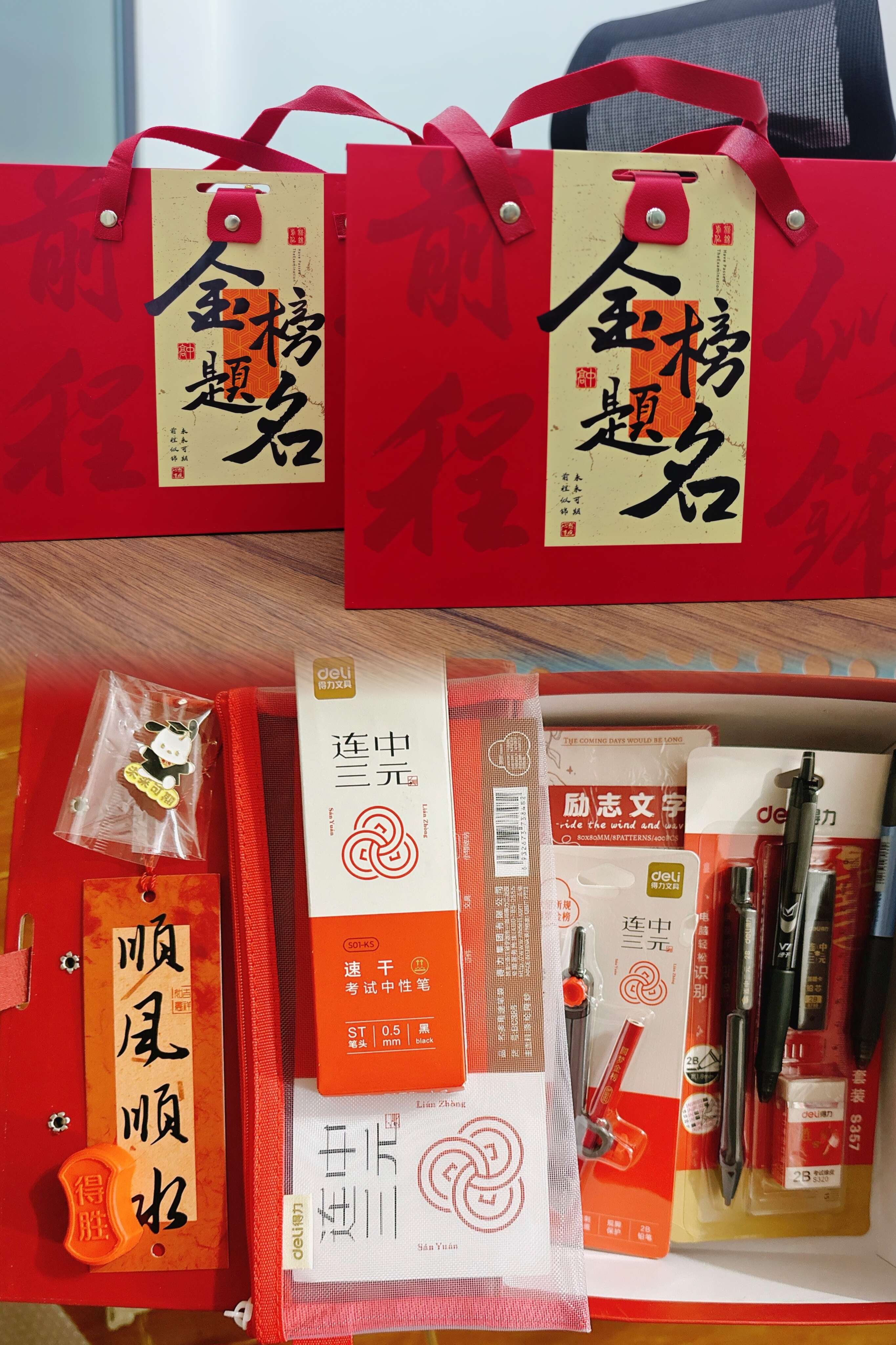 此次發放的大禮包內容豐富且極具意義。其中,文具套裝包含了高品質的簽字筆、涂卡筆、尺子等考試必備文具,助力學子們在考場上發揮出最佳水平;祝福語書簽上,書寫著“旗開得勝”“未來可期”等充滿鼓勵與期許的話語,寄托著公司對考生們的美好祝愿。