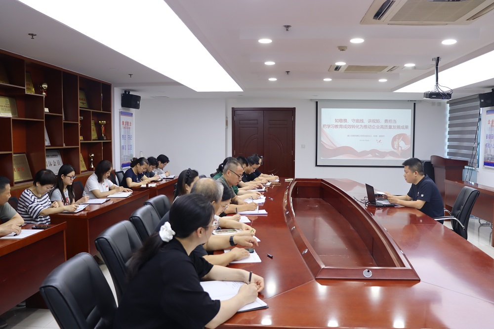 會上,夏國祥重點傳達了建工集團慶祝建黨104周年表彰會暨學習教育黨課報告會和建工安裝慶祝建黨104周年表彰會暨學習教育黨課報告會精神,并講授了題為 《知敬畏 守底線 講規矩 勇擔當 把學習教育成效轉化為推動企業高質量發展成果》的專題黨課。黨課中全面梳理了中央八項規定的具體內容,系統闡述了中央八項規定精神的內涵,結合近期典型案例深入剖析了違反中央八項規定精神的具體表現,并就如何推深做實深入貫徹中央八項規定精神學習教育,以優良工作作風凝心聚力、擔當作為,切實將學習教育成果轉化為提升工作實績實效展開深入探討。