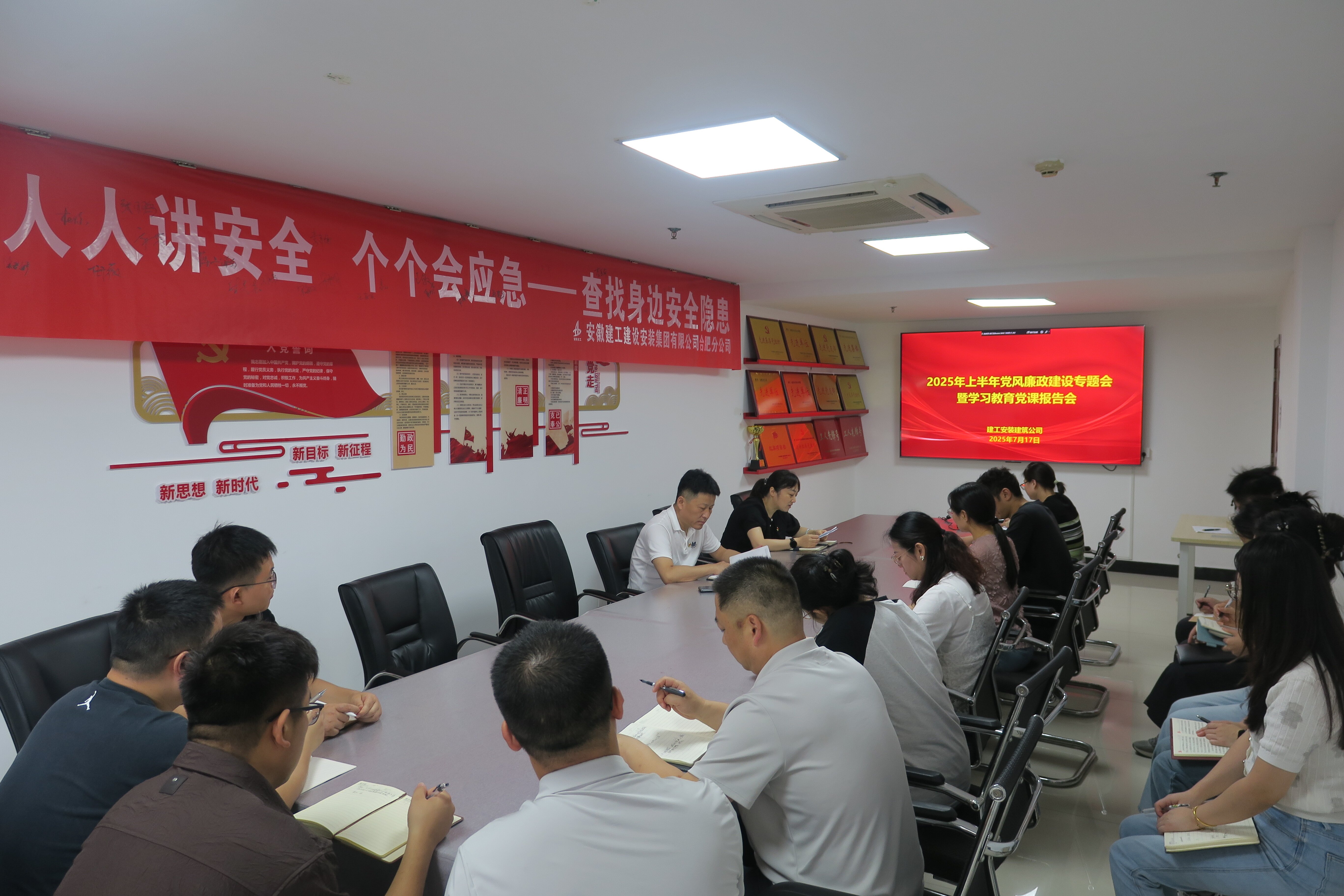 7月17日上午,建工安裝建筑公司召開2025年上半年黨風廉政建設專題會暨學習教育黨課報告會,建筑公司領導班子、部門負責人、各項目主要負責人、支部黨員參加會議。