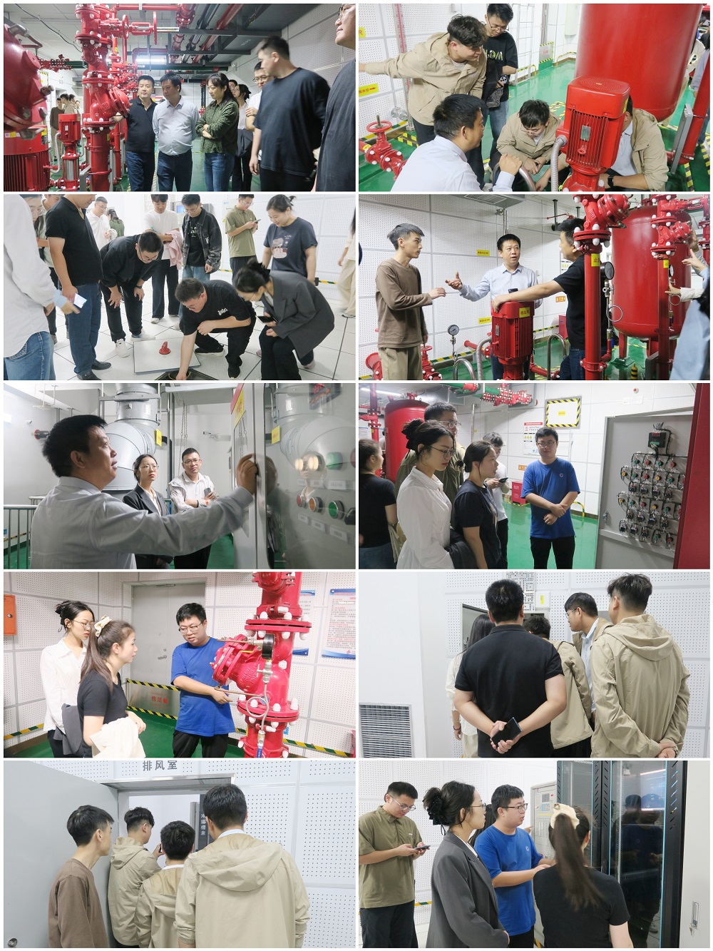 此次觀摩采取“現(xiàn)場看、聽匯報、議亮點、找差距”的方式,先后深入項目雨水泵房、消防泵房、配電房等觀摩點。每到一處,觀摩人員均認真聽取項目負責人關于項目建設、工藝創(chuàng)新、安全生產(chǎn)及成果轉化等方面的匯報,詳細詢問項目推進中的難點堵點,并圍繞施工流程優(yōu)化、成本管控、質量把關等關鍵環(huán)節(jié)展開交流探討。其中,項目的BIM技術及智慧建筑技術應用、綜合管線布置、設備接地、泵體接地、橋架內(nèi)線纜敷設等創(chuàng)新做法成為現(xiàn)場交流的焦點,參觀人員紛紛拍照記錄、駐足研討。